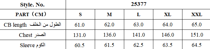 • الأكمام: طويلة ومجعدة عند الأطراف بإطار مطاطي مريح.