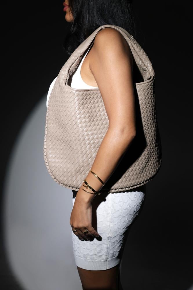 حقيبة كتف كبيرة بجلد إنترشياتو منسوج بشكل فريد ومميز