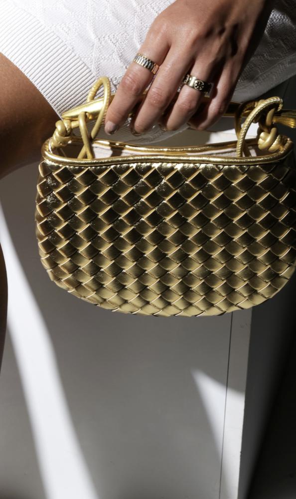 حقيبة كروس بودي من الجلد المجدول بمقبض علوي معدني