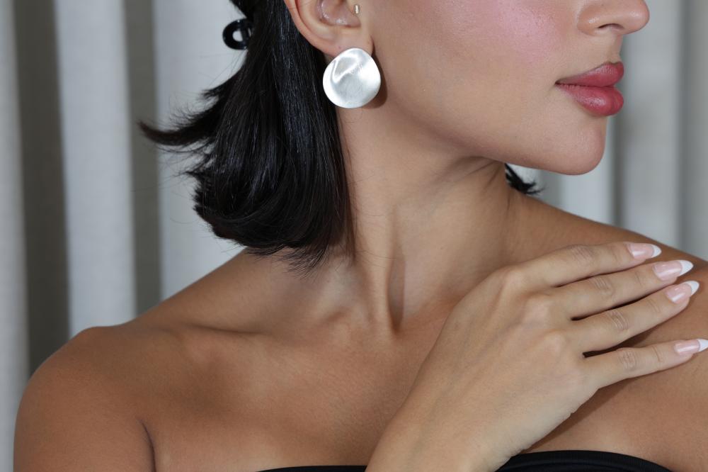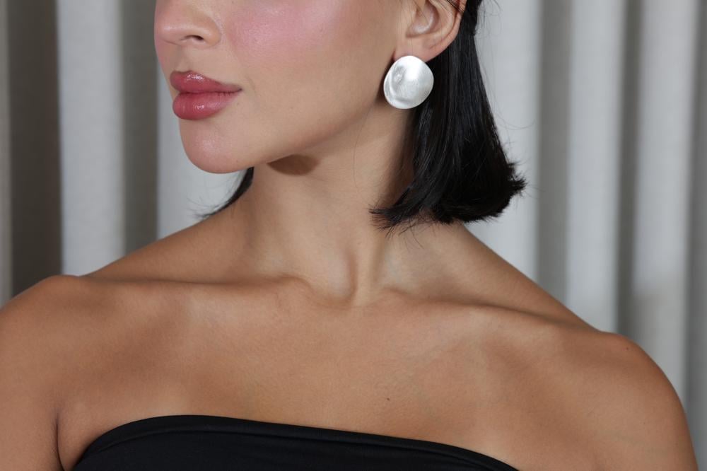 استوحي إطلالتك من جمال الطبيعة العفوي مع هذا الحلق الفضي اللامع بملمس مطفي ناعم. تصميمه غير المنتظم يُحاكي شكل الحصى المصقول بالماء أو ورقة معدنية ناعمة التموج، ما يمنحه طابعًا فنيًا وانسيابيًا يعكس الذوق العصري الهادئ.