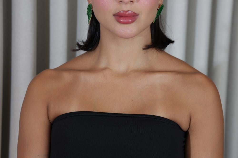 انغمسي في عالم الطبيعة الساحر مع هذا الحلق المميز المستوحى من ورقة شجر نابضة بالحياة. تصميم ثلاثي الأبعاد أخضر زمردي لامع يعكس الضوء بانسيابية فاخرة، ليمنحك مظهرًا مشرقًا وفريدًا. الحواف الذهبية تضيف لمسة دافئة وتُبرز تفاصيل الورقة الدقيقة بنعومة وأناقة.