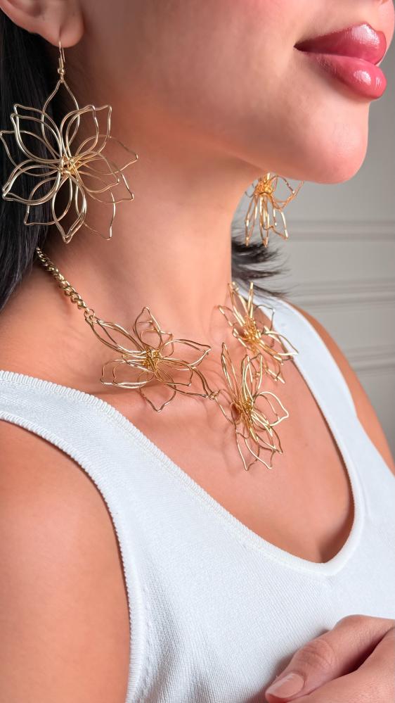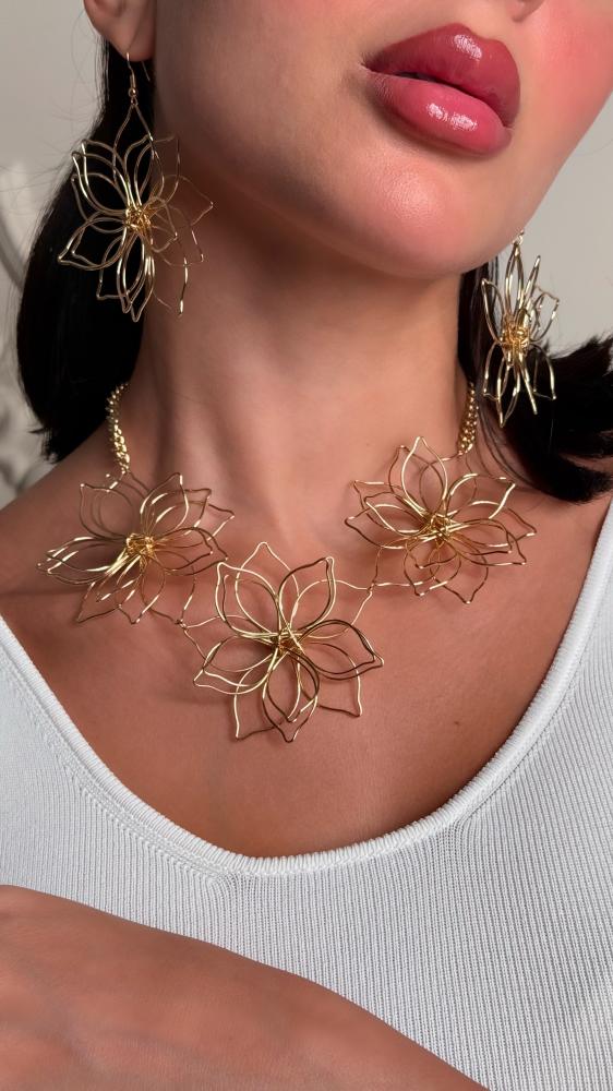 طقم سلسال و حلق تصميم زهور ثلاثية الابعاد
