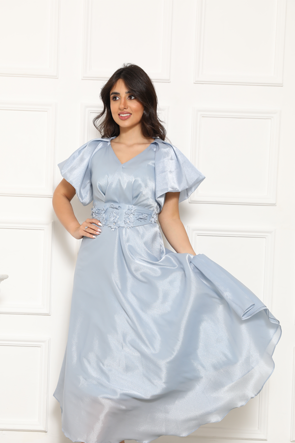 ياربي على الكياته 😍💗 ونعومة ع انوثة وجمال كلهم اجتمعو بهالفستان 💗ودرجة اللون هادية وحلووة وبجزام ورود من الخصر