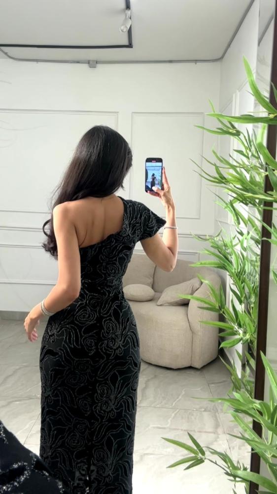 فستان بقصة الكتف الواحد مخمل