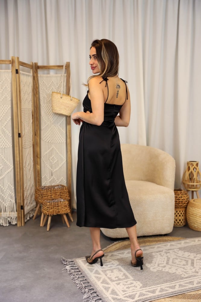 فستان ستان حرير حفر ناعم بفتحات من الجوانب.