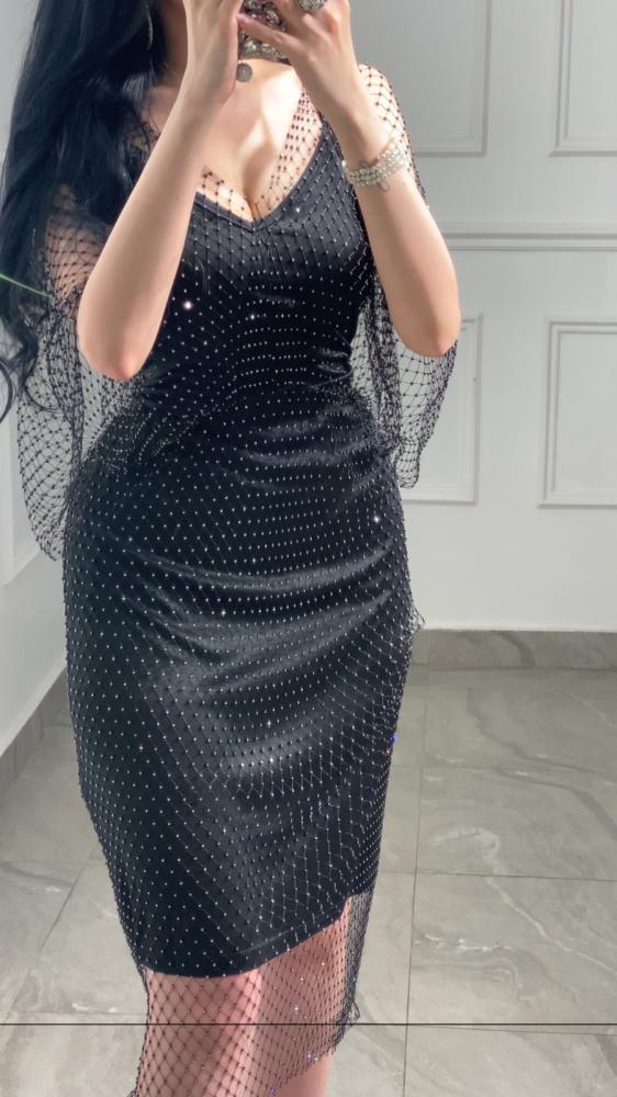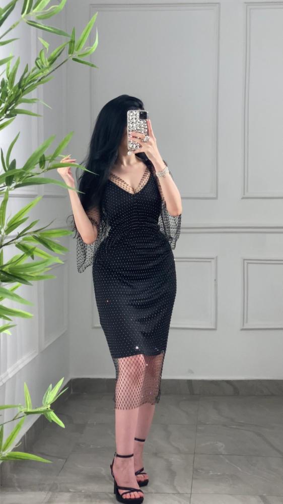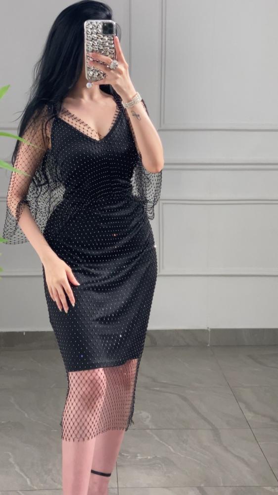 فستان سهره قطعتين ميد بقطعه علويه محيوكه مزينه بكريستالات صغيرة