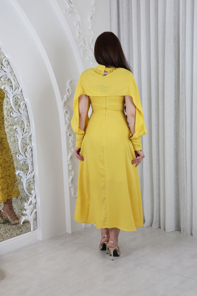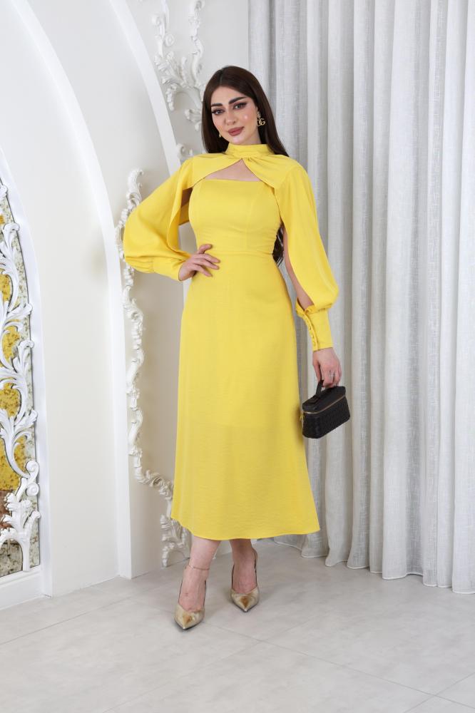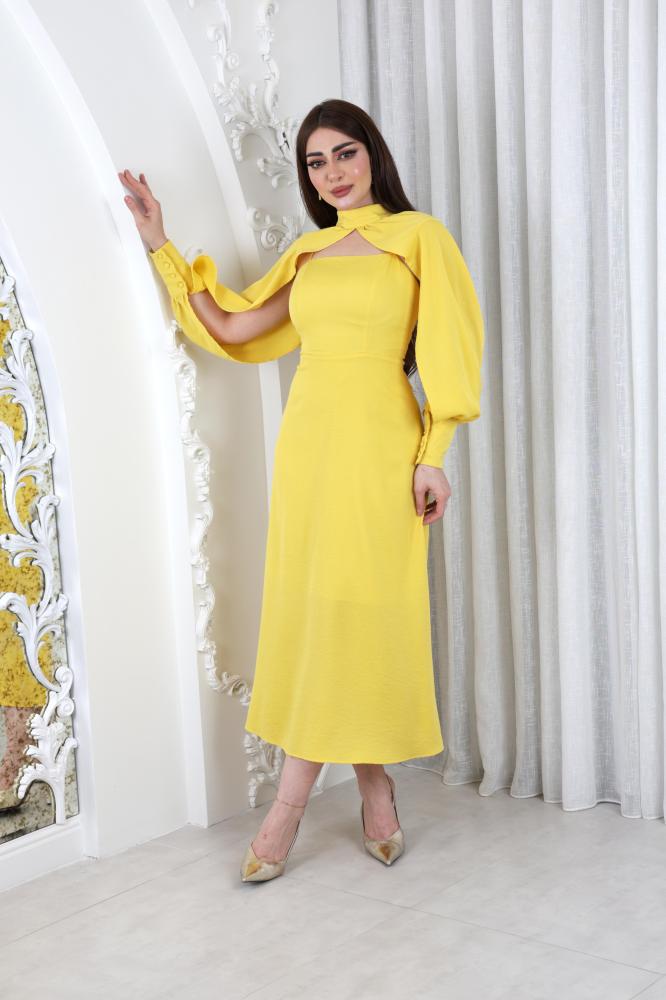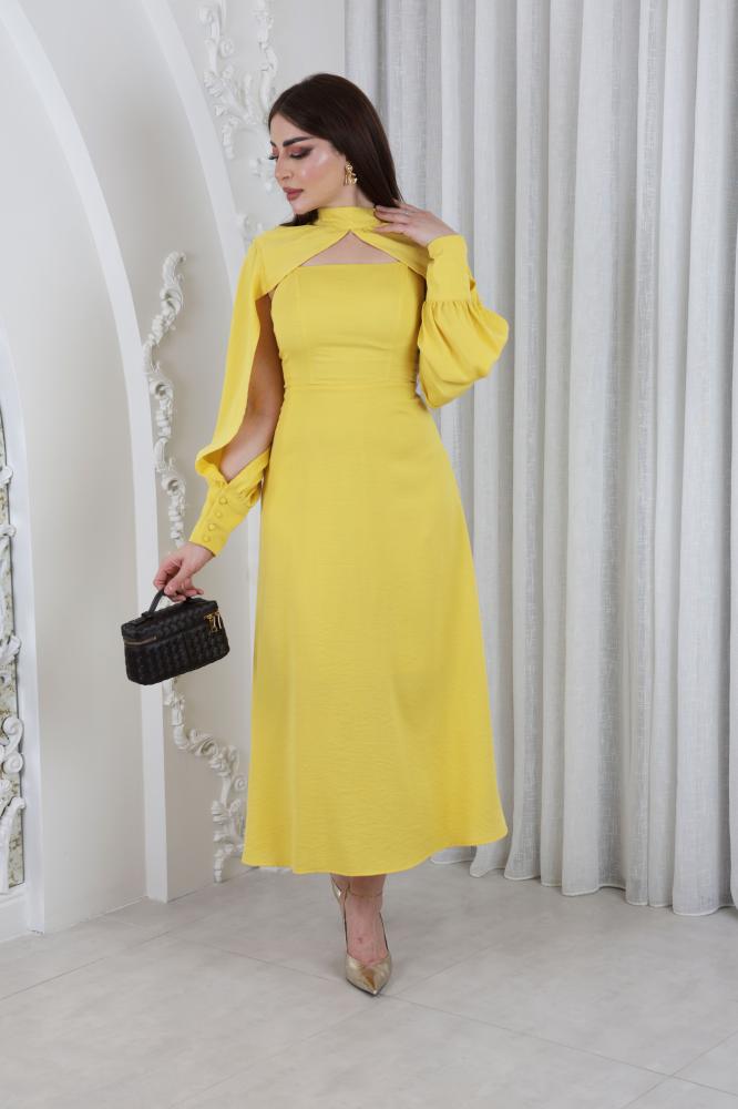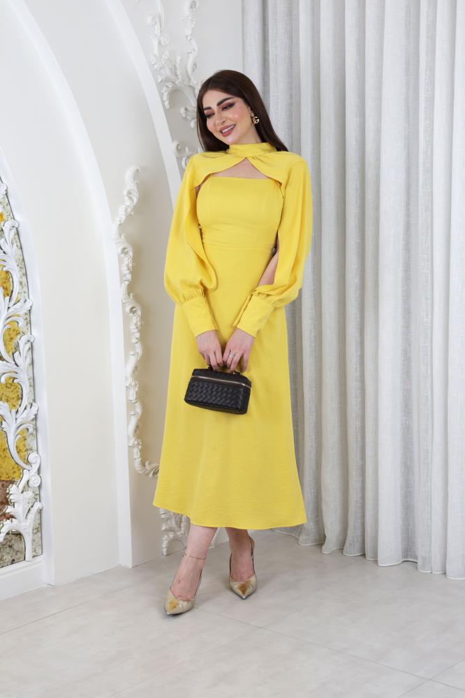 فستان ناعم قطعتين منفصلة بأكمام طويلة مزينة بأزرار وبياقة مرتفعة