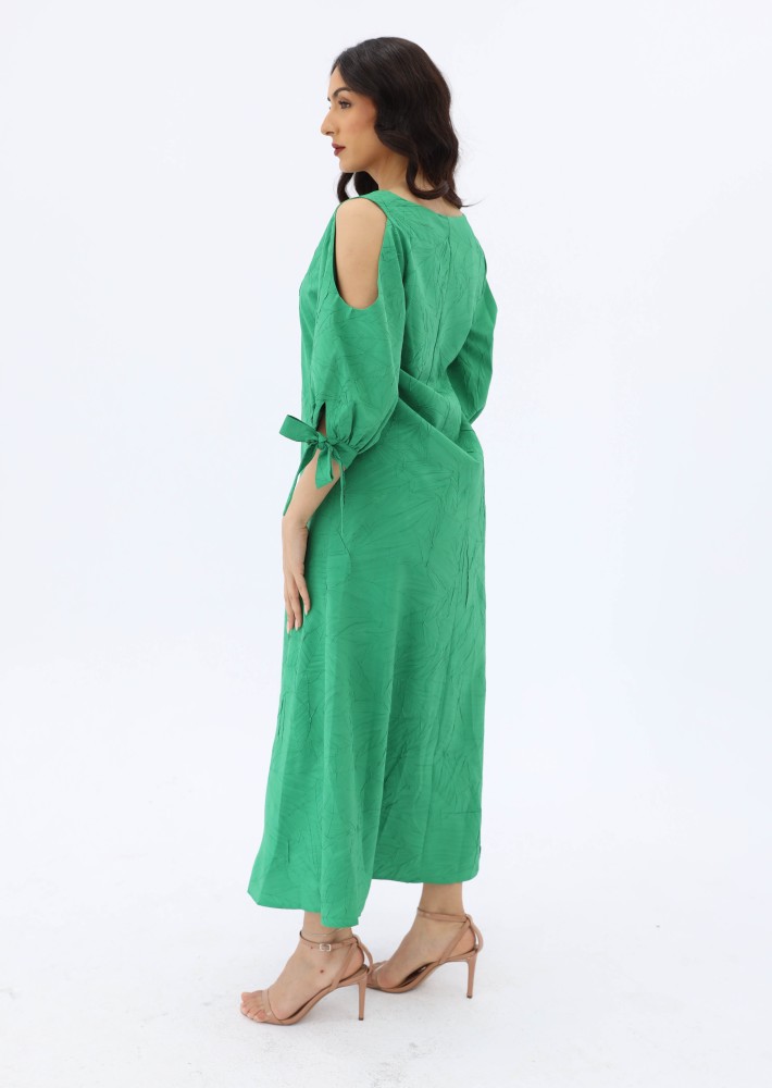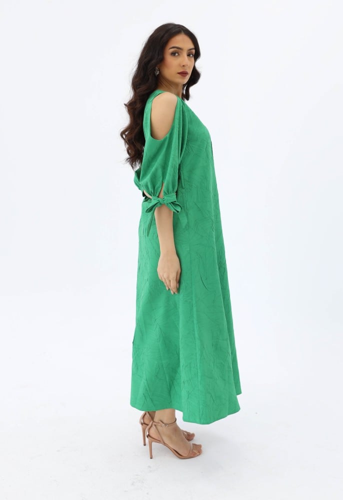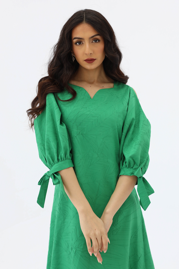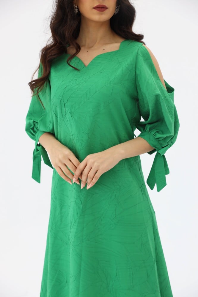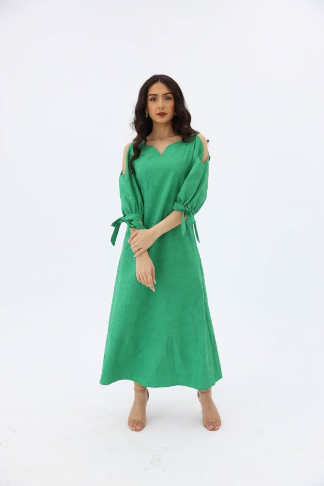 فستان بقصة سويت هارت باكمام حيران مكشوفة من الاكتاف بقصة سويت هارت من الصدر بحزام خارجي .