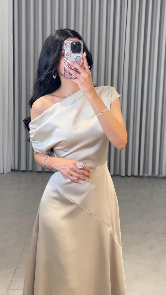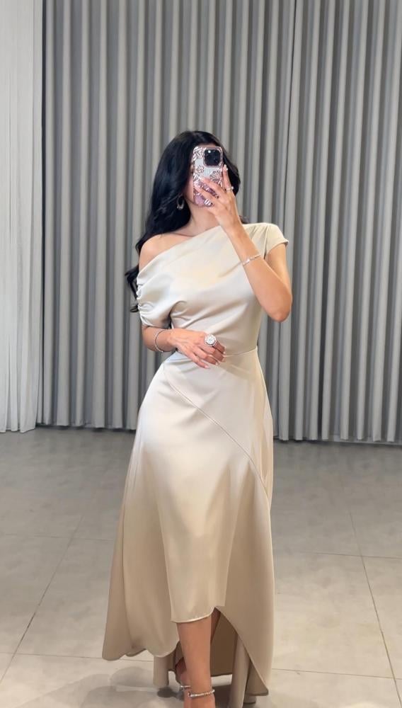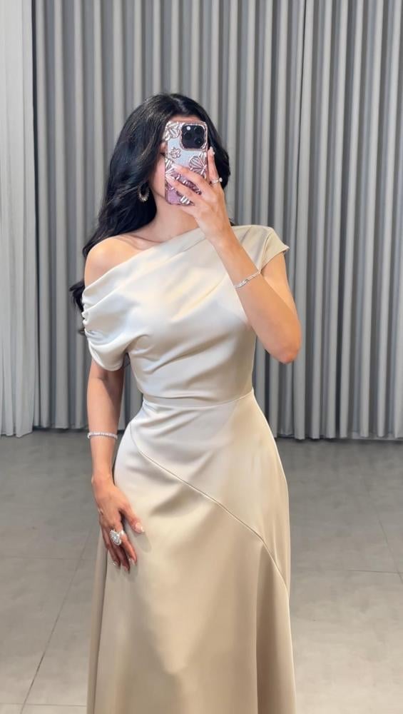 فستان حرير بزم على الاكتاف
