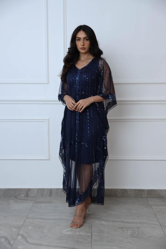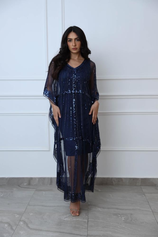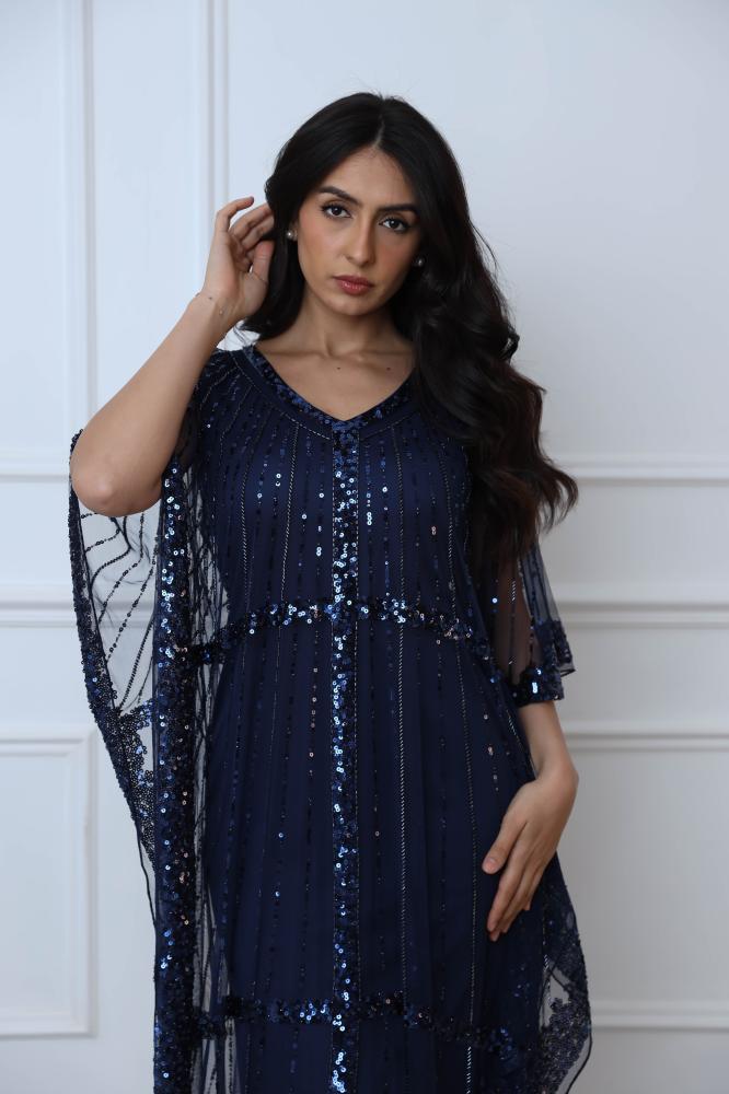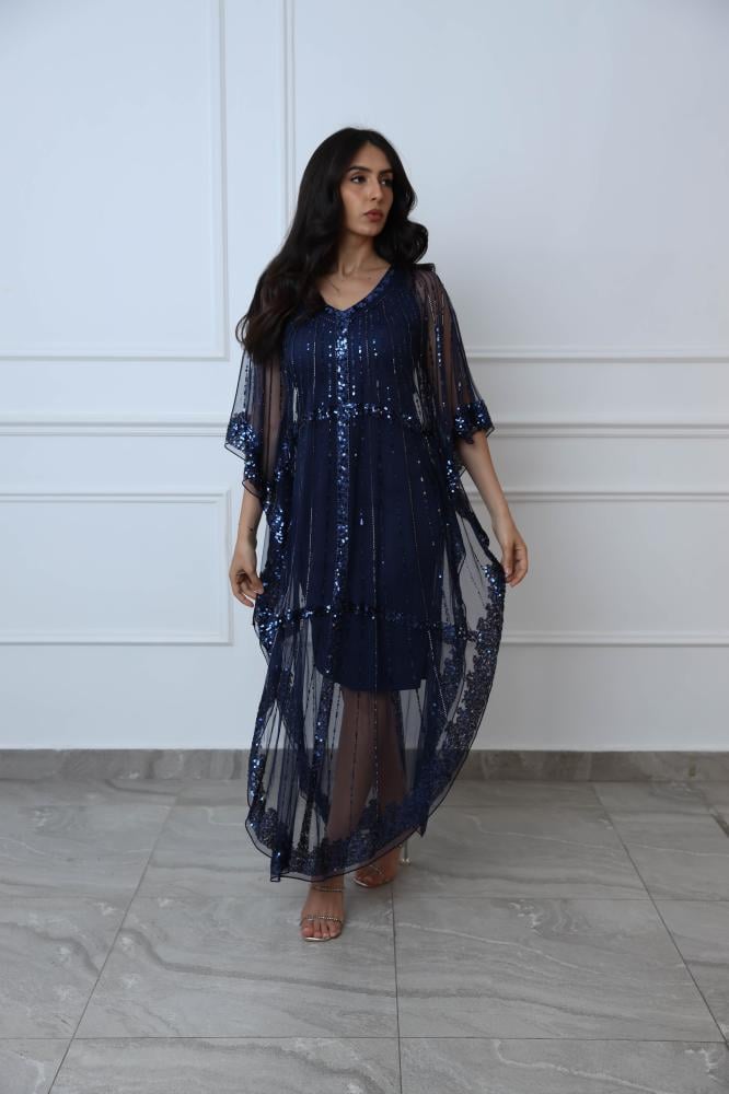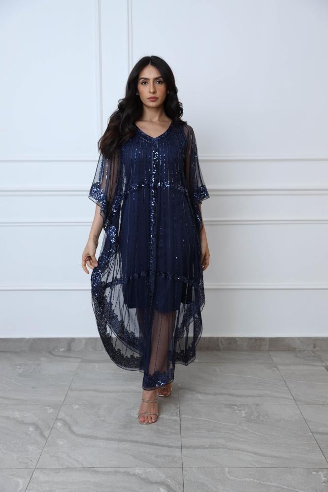 فستان سهره بقصة الفراشة بياقة V ببطانه متصلة مزين بشك وترتر